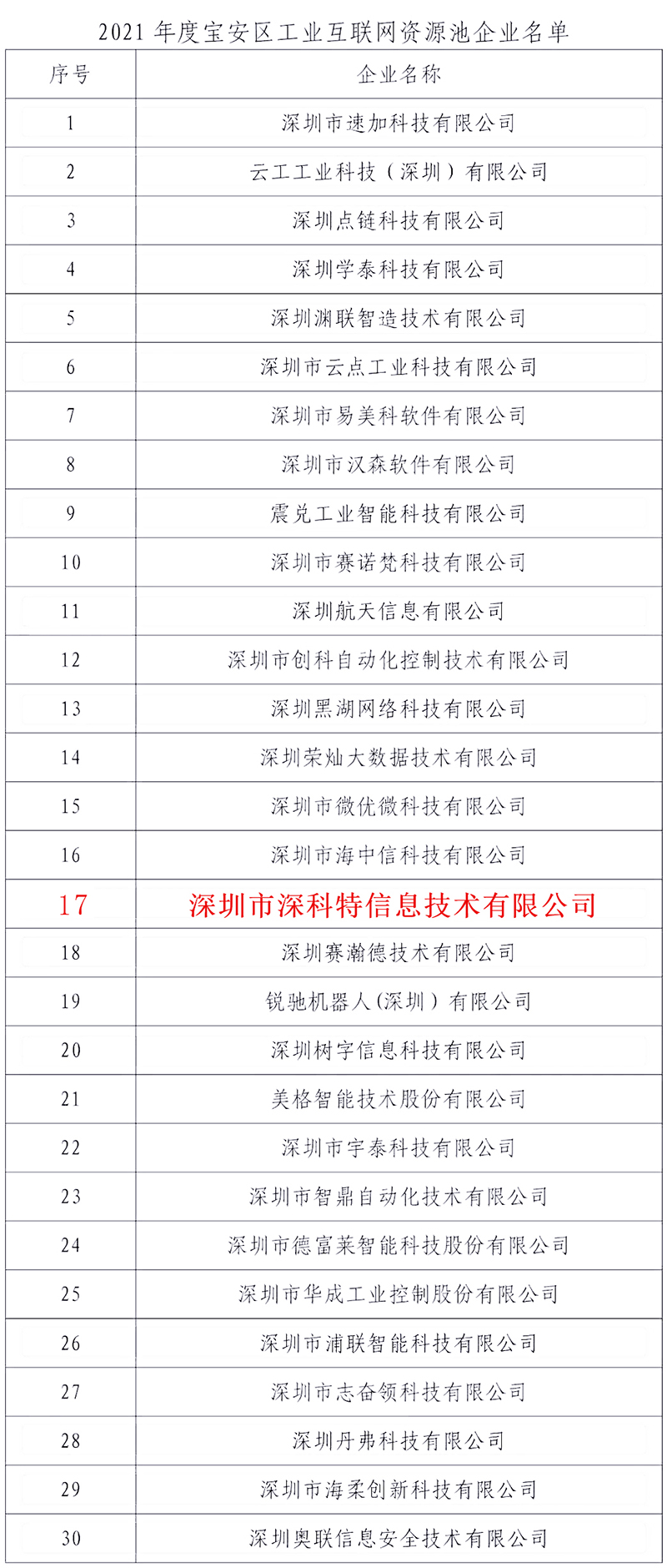 公示轉載至深圳市寶安區工業互聯網行業協會